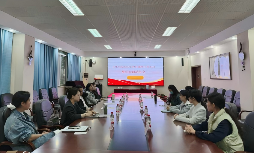 为全力备战2025年教育部全国高校音乐教育专业师生基本功展示,音乐学院于2025年10月23日下午,在105会议室举行了基本功展示行前动员会。学院院长胡晓东教授、副院长陈若旭教授、音乐教育系主任杨玲副教授、音乐表演系主任左倩副教授、教师桑慧芳及全体参赛师生参加了此次会议。