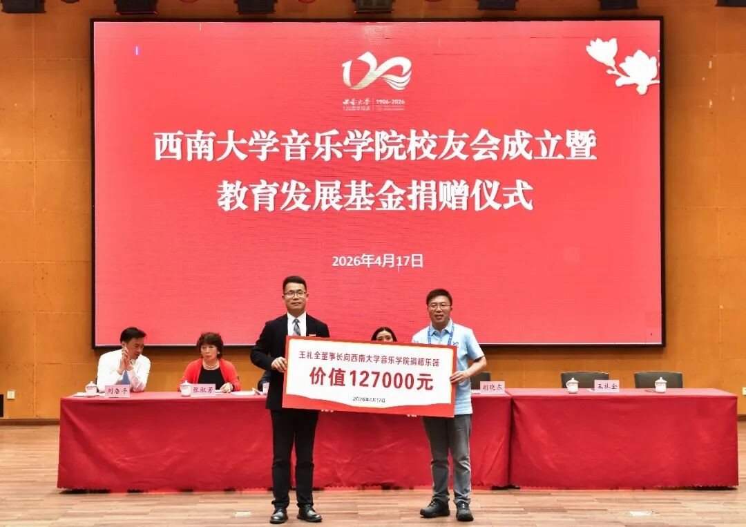 值此校友会成立暨教育发展基金启动之际,西南大学音乐学院退休教授张淑芳、重庆月光文化传播有限公司董事长王礼全等多位校友向学院捐赠资金、乐器、题字等,以务实举措助力学院教育发展。此次捐赠不仅为教学科研与人才培养注入实质性支持,更彰显校友群体对母校的深厚情感与责任担当。捐赠仪式上,张淑芳教授在发言中深情回顾母校培育之恩,表达诚挚感激,并寄望母校持续培育优秀人才,传承百年办学薪火。学院领导郑重致谢,承诺将严格遵循捐赠意愿,科学规划使用资源,全面推动学院事业高质量、可持续发展,不负校友重托。
