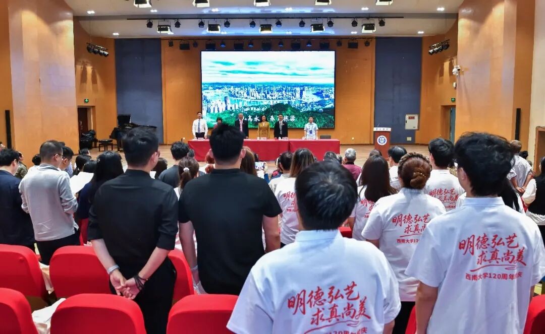 仪式结尾,全体参会人员起立共唱西南大学校歌,仪式顺利落幕。这次盛会为校友们搭建了合作交流、共同进步的平台,同时为学院发展增添了新动力。坚信在全体校友齐心协力之下,音乐学院校友会将持续成长壮大,为学院前行与社会提升作出积极贡献。