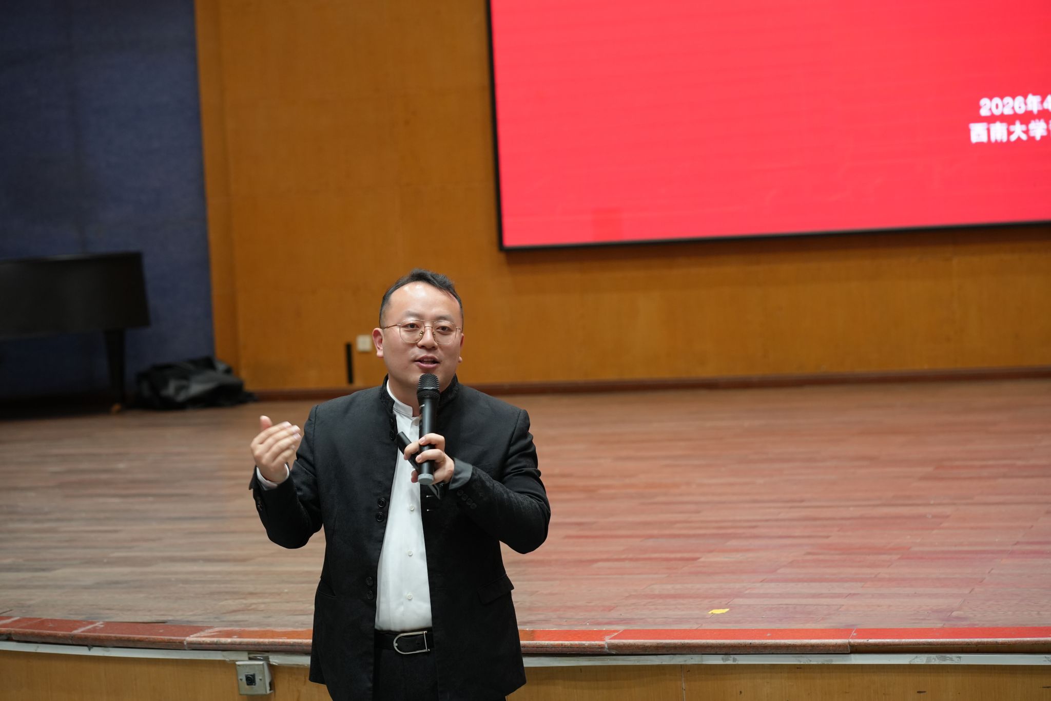 1998 级校友、重庆月光琴行董事长王礼全以《以乐为路,以心致远》为题,结合数十年行业深耕经历,深情回顾了从西南大学音乐学院学子成长为行业领军者的奋斗征程,分享了行业发展前沿洞察与实践心得,勉励在校学子坚守音乐初心、勇担时代使命。1995 级校友、韶关学院音乐与舞蹈学院院长秦伟教授,围绕高校音乐人才培养、学科建设及校企合作等关键方向,分享了多年积累的实践经验与创新思路,为学院专业建设与人才培养提供了有益借鉴。2006 级校友税雪、施程亮与 2014 级校友符斌,分别立足基础教育、艺术培训和文艺工作岗位,以鲜活的一线案例分享音乐教育心得与育人智慧,生动展现了西大音乐学子在不同领域的责任与担当。2000 级校友尹岳以《教育,让生命诗意生长》为题,深刻阐释美育育人的核心价值与时代意义,引发在场师生强烈共鸣与深入思考。