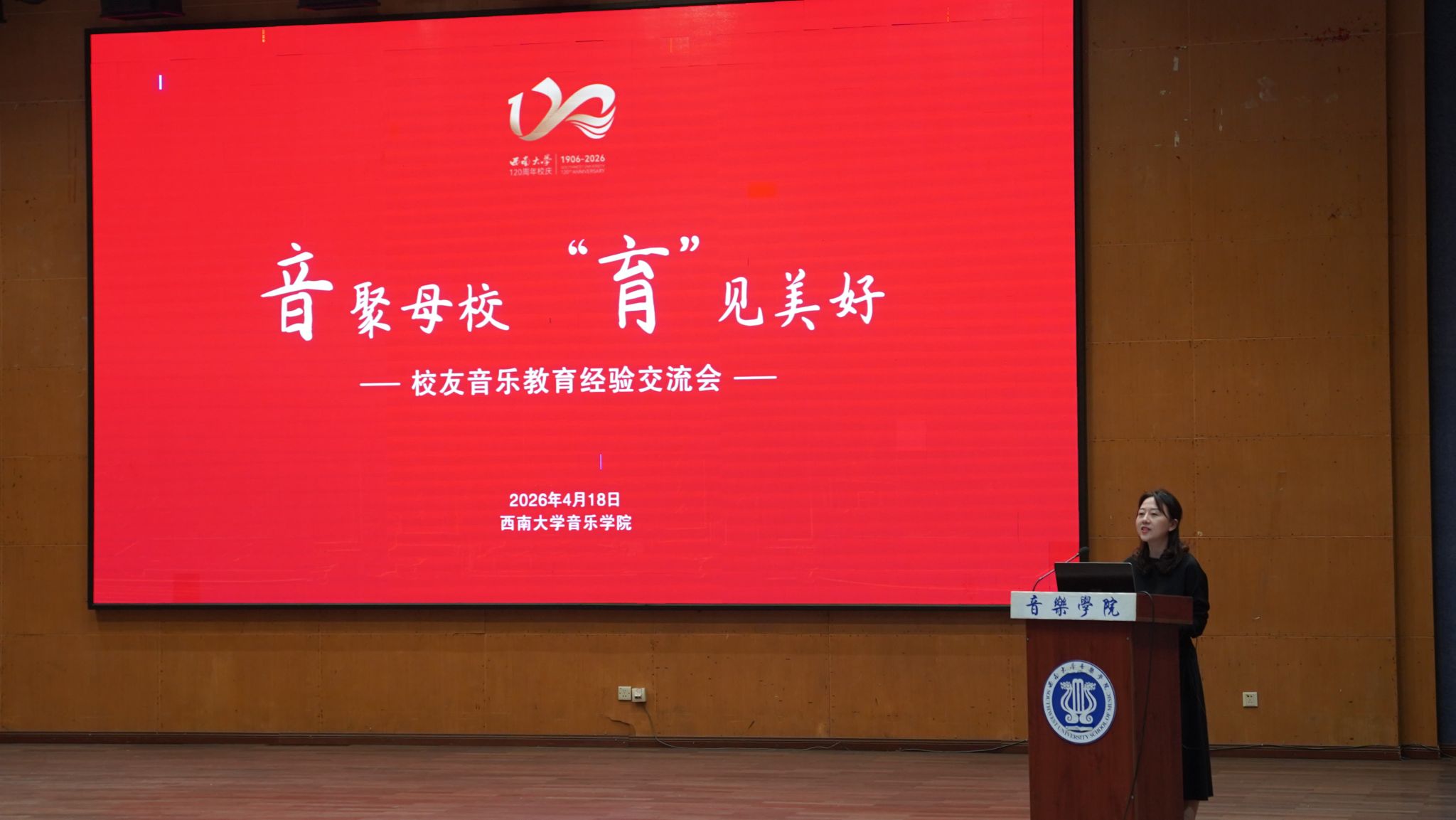 在西南大学 120 周年校庆之际,为进一步搭建校友与母校沟通交流的坚实桥梁,充分展现音乐学院办学成果与校友风采,4 月 18 日,“音聚母校, ‘育’见美好 —— 音乐学院校友音乐教育经验交流会”在厚乐楼 B 栋小演奏厅顺利举行。学院领导班子成员、优秀校友代表及在校师生齐聚一堂,以乐为媒,共叙师生深厚情谊,共忆同窗美好时光,共话音乐教育发展,为西南大学百廿征程献上一场饱含艺术温度与育人情怀的温馨交流。