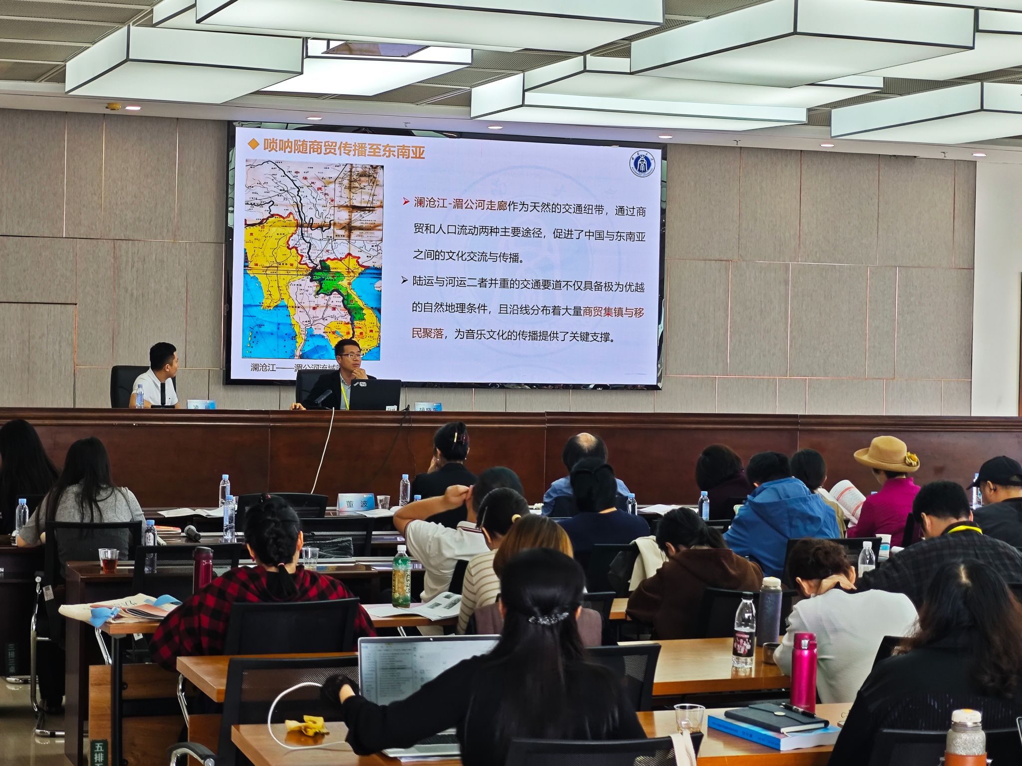 胡晓东教授作题为《区域国别视角下唢呐在东南亚周边的传播及影响研究》的主旨发言,他以田野考察为基础,结合历史文献、图像实物和口述资料进行考辨与比较,从区域国别学视角探究东南亚各国唢呐的形制、名称、演奏技术、音乐形态以及律制特征等,厘清其在东南亚地区的传播流变脉络与文化成因,进而探析东南亚区域各国、各民族的文化心理、思想情感、身份认同以及交流互鉴的历史事实,揭示“人类命运共同体”背景下,中国与东南亚周边各国的政治、经济与国际关系,以及休戚与共、交融共生的历史进程。