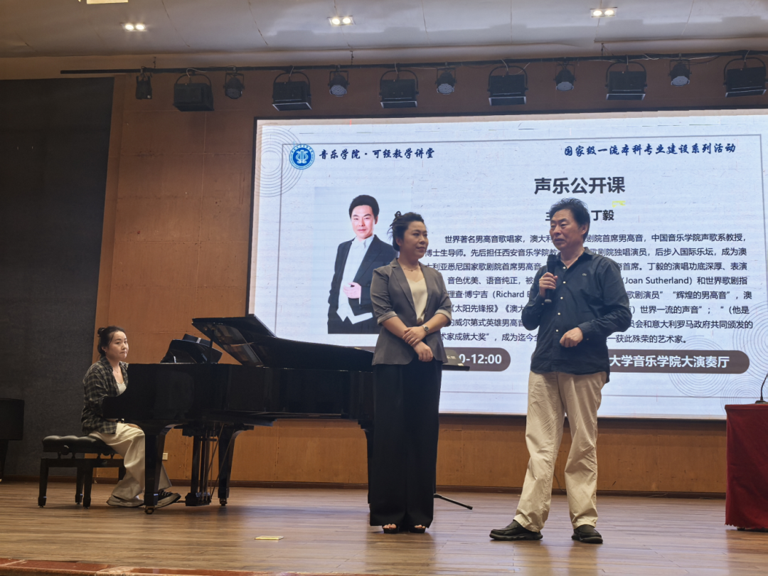 聘任仪式结束后,丁毅教授随即开展了声乐公开课。他先后对刘潇林、葛爱新、万欣、玛尔建四位声乐教师进行了一对一的悉心指导,并倾情分享了自己独特的教学方法与艺术理念,令在场师生受益匪浅