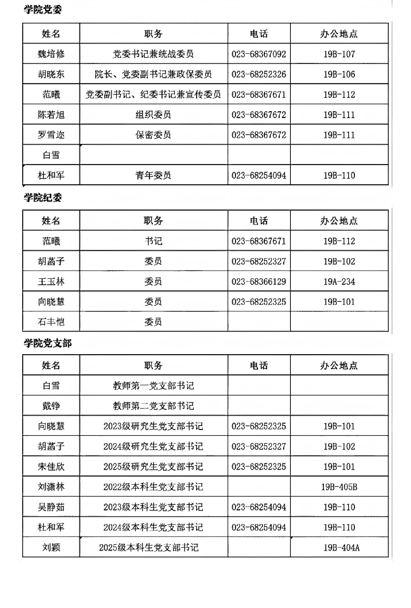 学院党委、纪委、党支部情况